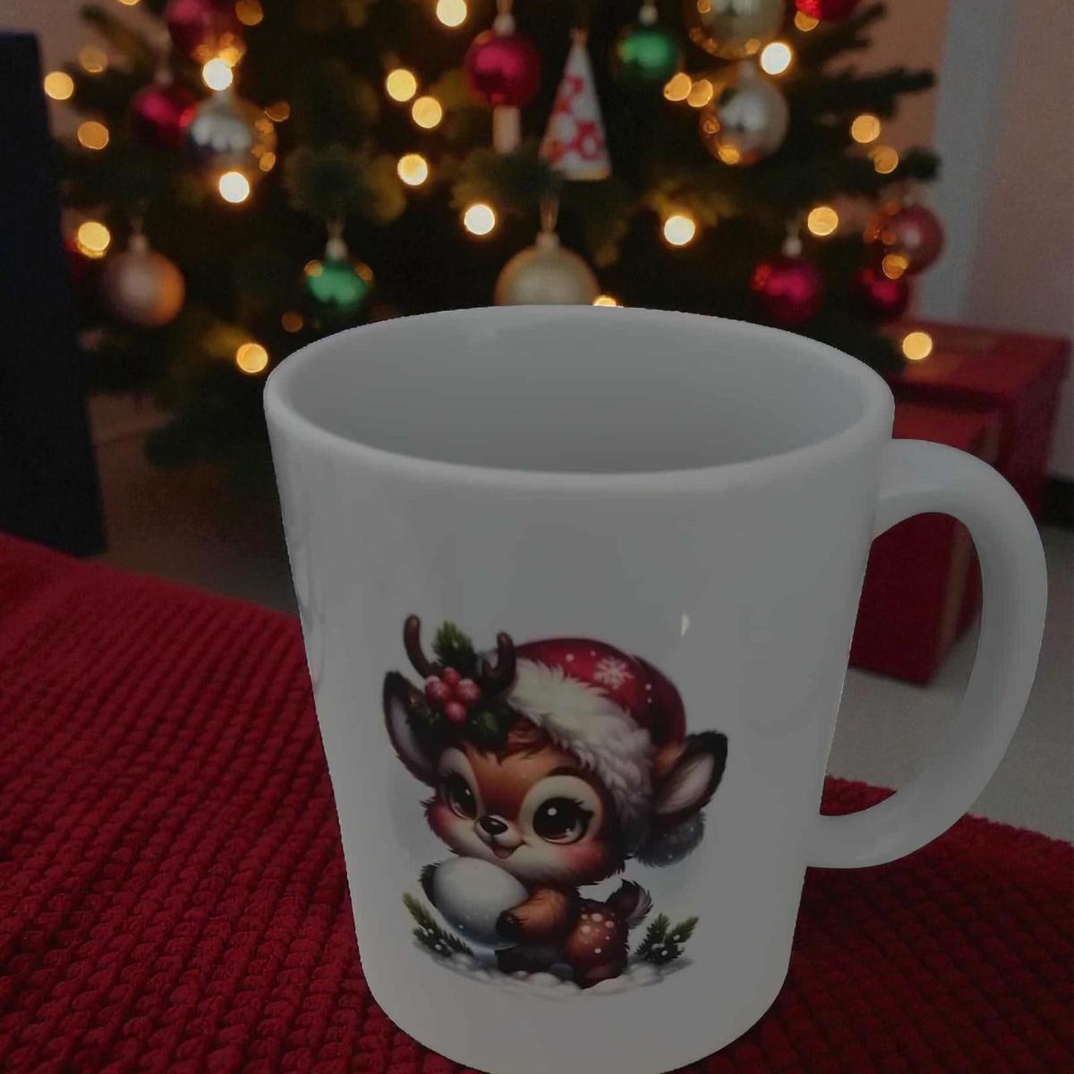 🦌 Mug de Noël – Petit Renne Mignon & Message “Merry Christmas”